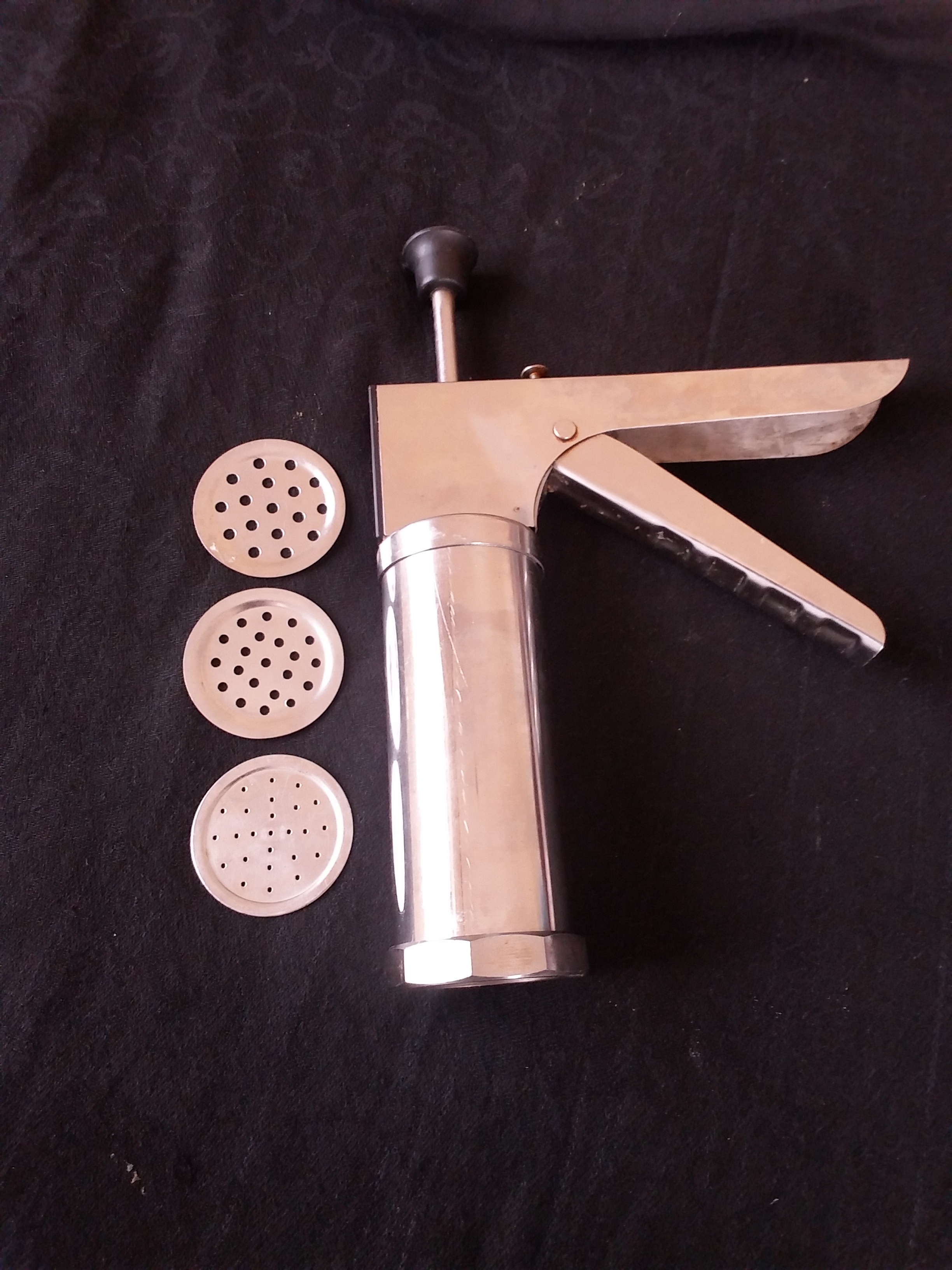 Using small or medium or thin mould fill the press with small piece of dough