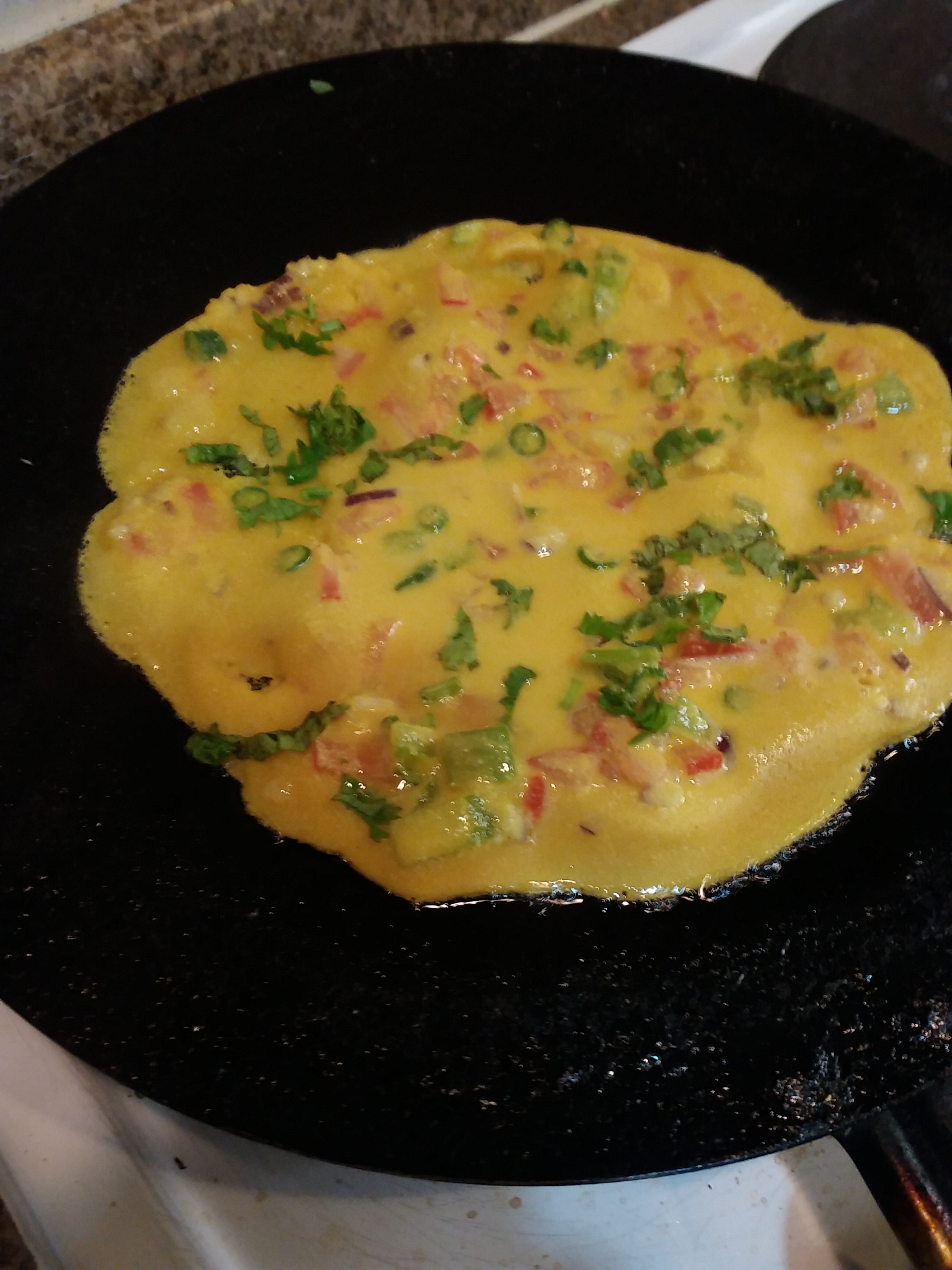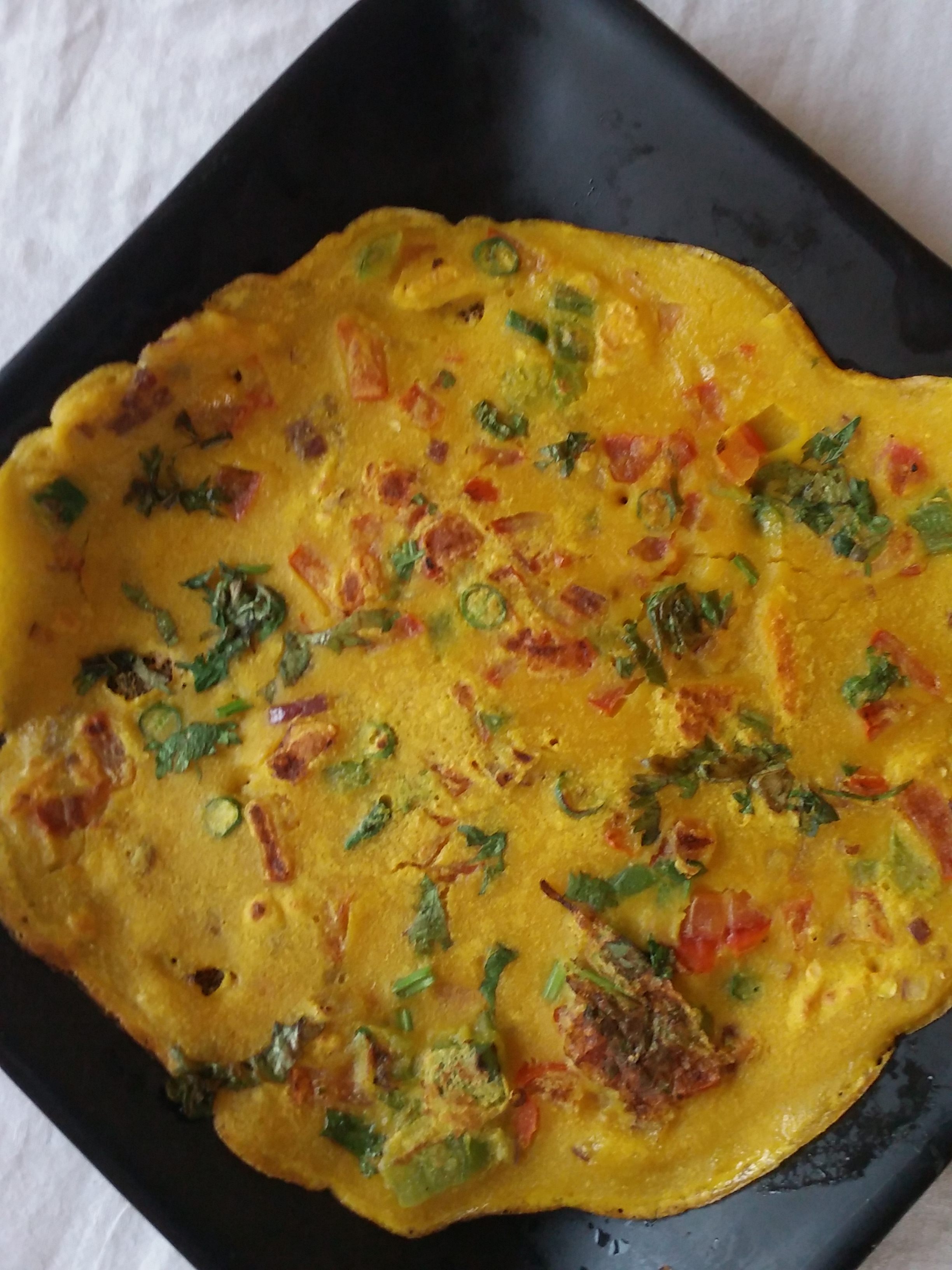 Besan chela one of the easy evening snack liked by all. My amma named it vegetable omelet. We can make different varieties of cheelas. Here I am giving cheela with tomato ,capsicum and onion. We can use any kind of veggies or paneer, cheese ,corn or any type of greens of your choice.